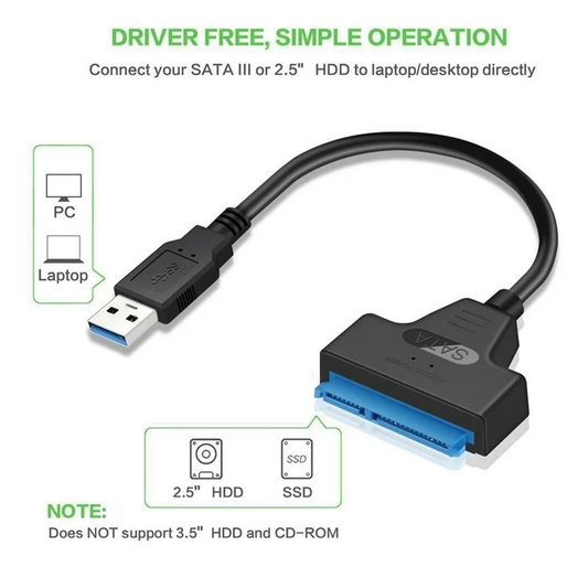 Adaptador Sata a USB 3.0 | Cable 22 Pines para SSD/HDD 2.5" | Transferencia Rápida Plug & Play – 22cm