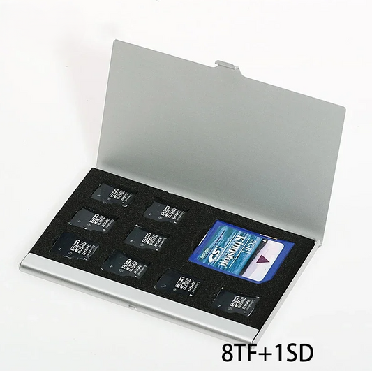Estuche Metálico para Tarjetas MicroSD y SD – Aluminio Ultra Delgado, 9 Ranuras, Protección Antiestática, Color Plata