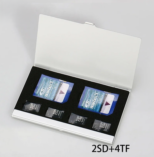 Estuche Aluminio para Tarjetas MicroSD y SD – 6 Ranuras (4 Micro + 2 SD), Compacto y Antiestático, Color Plateado