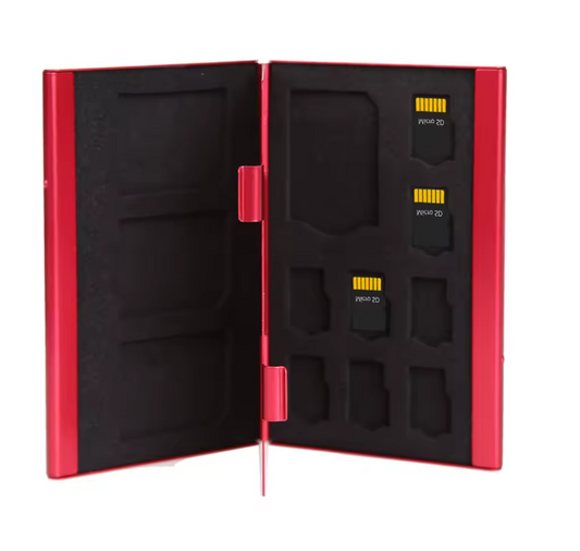 Estuche Aluminio para Tarjetas de Memoria – 4 SD + 8 MicroSD (TF), Antiestático, Compacto y Resistente
