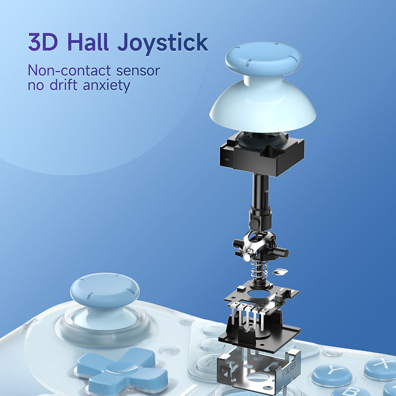 Control inalámbrico con un diseño totalmente ergonómico y antideslizante, compatible con varias consolas, tales como Nintendo Switch en todas sus versiones, PC, e iOS. Cuenta con una conexión mediante Bluethoot 5.0 o además por cable USB tipo C. Su batería recargable es de 600 mAh, lo que permite un promedio de 15 horas de juego continuo. Este modelo cuenta con botones frontales programables. Posee control de movimiento giroscópico de 6 ejes (sólo es compatible con la Nintendo Switch). Trae sistema de vibración de 4 niveles. Incluye función turbo de 3 velocidades.