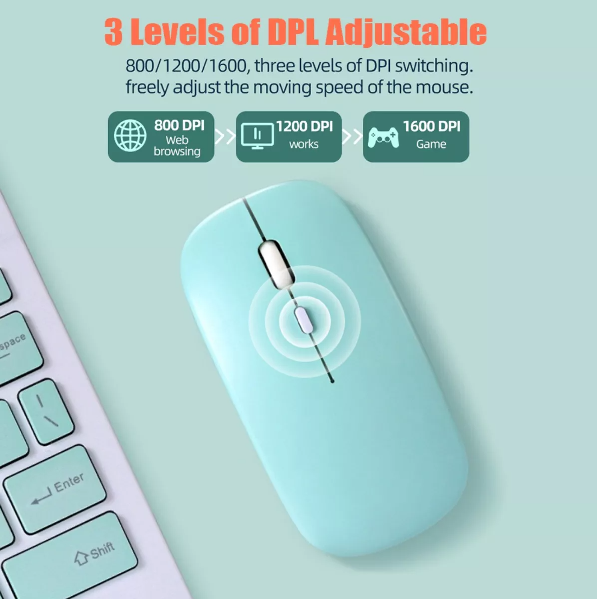 • Batería recargable :No es necesario reemplazar constantemente las baterías, simplemente recargar el ratón para un uso prolongado.