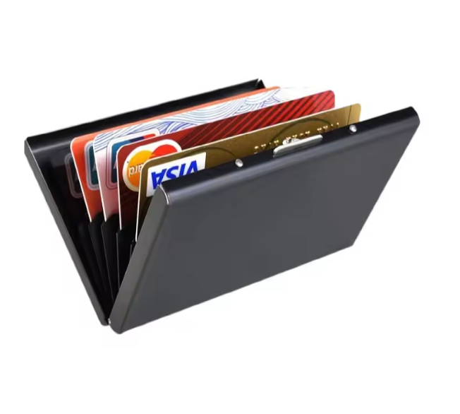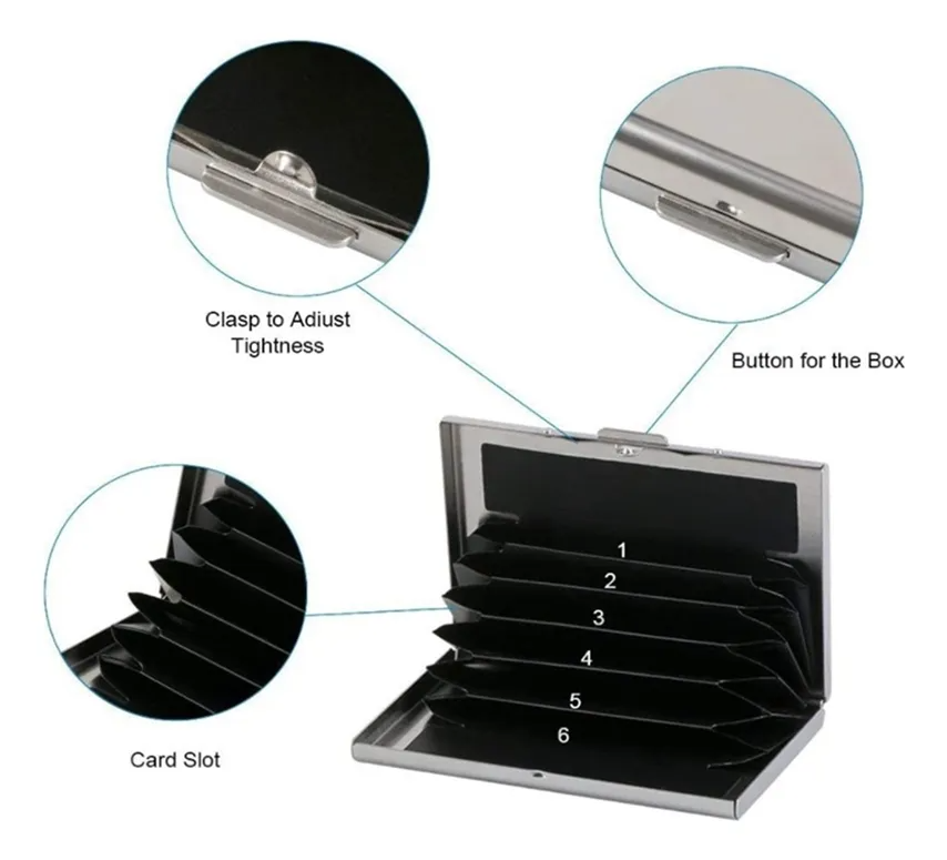 Tarjetero Metálico Plateado con Protección RFID | 6 Espacios | Diseño Elegante y Compacto para Hombre y Mujer